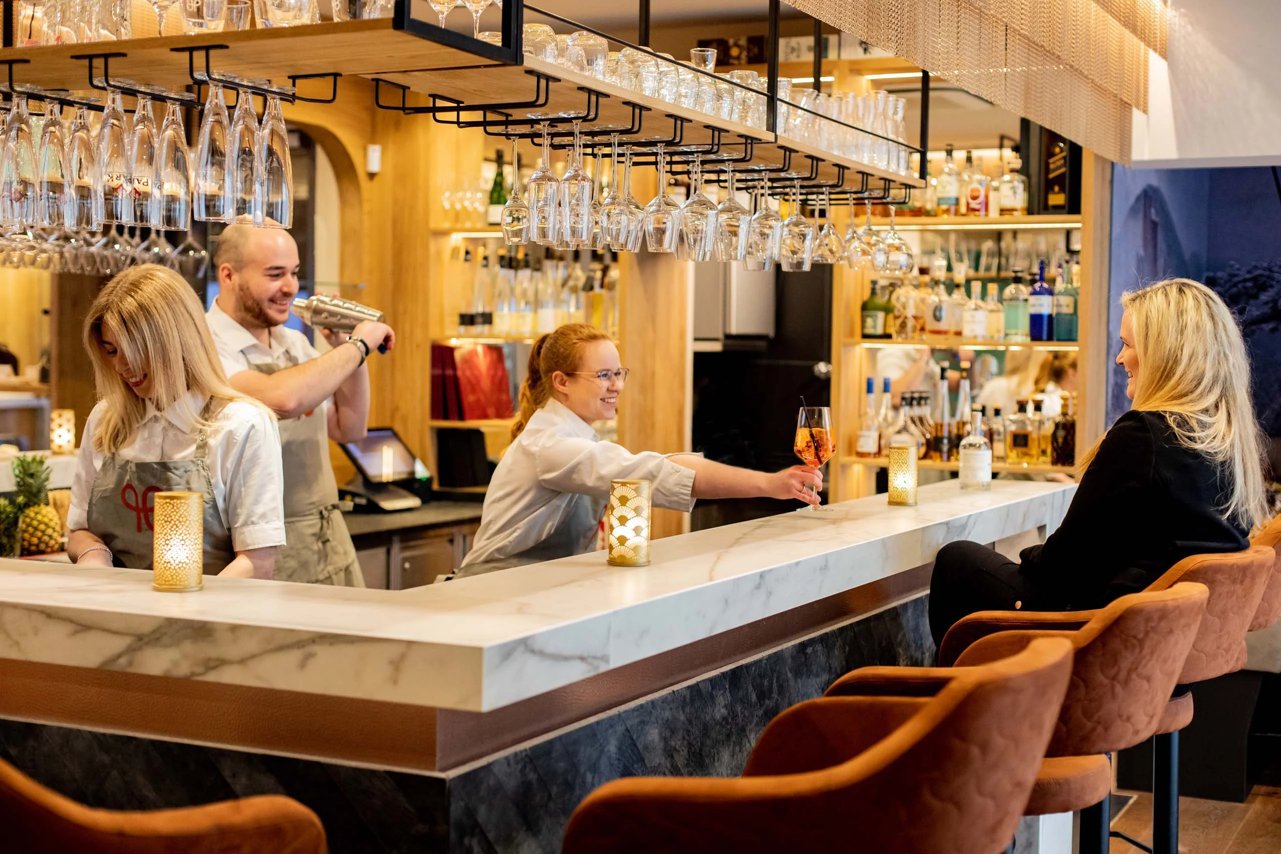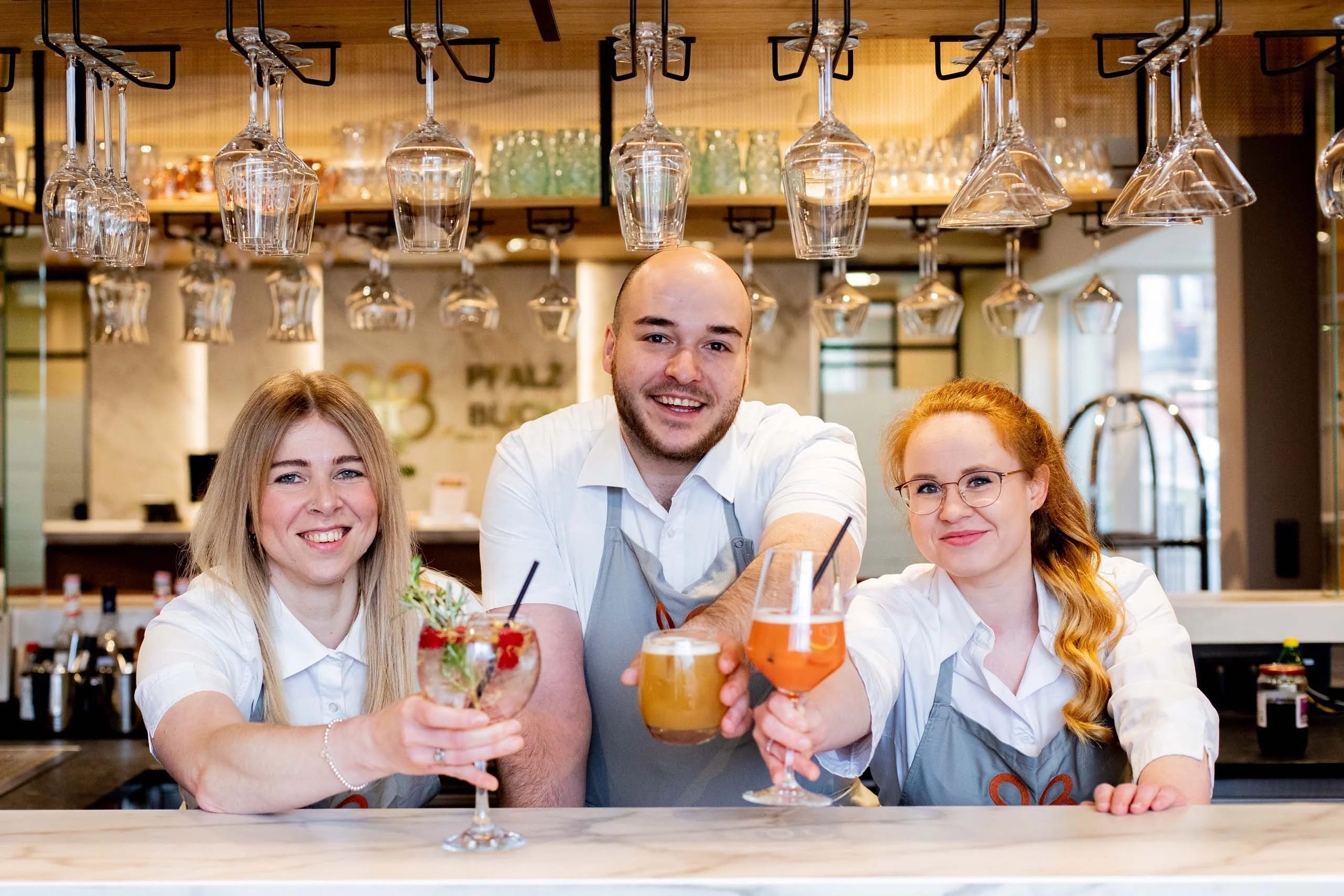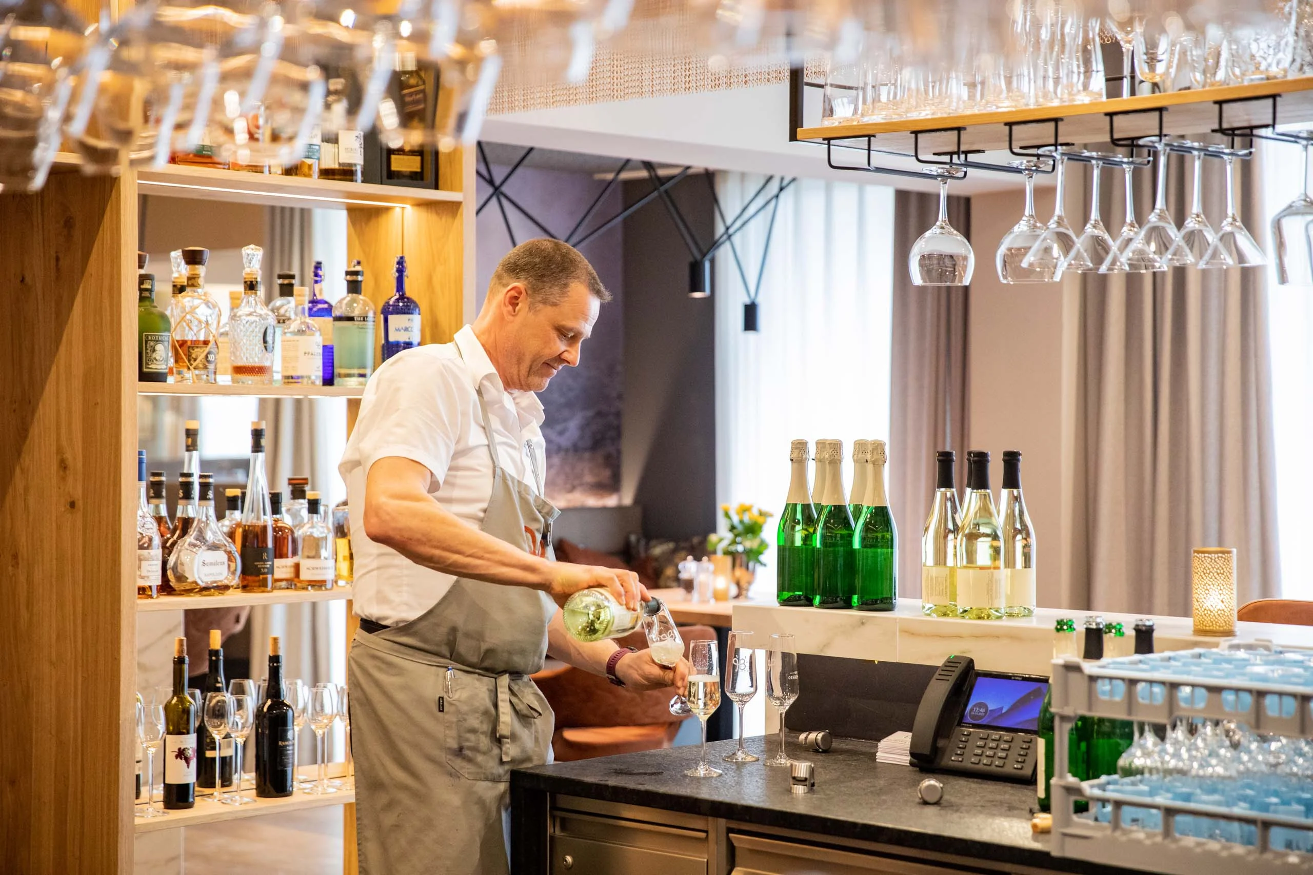 Ob als stilvoller Auftakt bei der Anreise oder als entspannter Ausklang eines Urlaubstags: Unsere Bar zwischen Hotelhalle und Restaurant ist der perfekte Ort, um zur Ruhe zu kommen, anzustoßen und das Leben zu genießen. Ein besonderes Highlight ist der begehbare Weinschrank – gefüllt mit edlen Tropfen aus der Pfalz und ausgewählten internationalen Weinen.