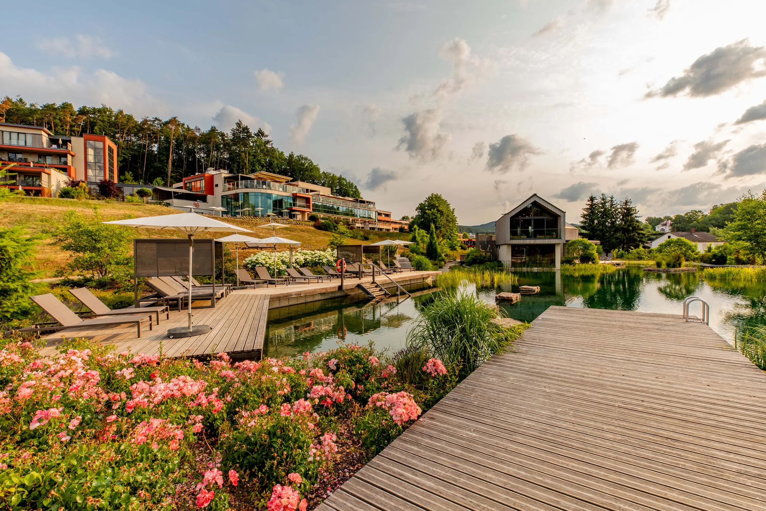 Täglich kümmert sich unser Gärtner-Team mit viel Liebe zum Detail um die Pflege und Instandhaltung des Naturbadeteichs und um die weitläufige Gartenanlage im Hotel.