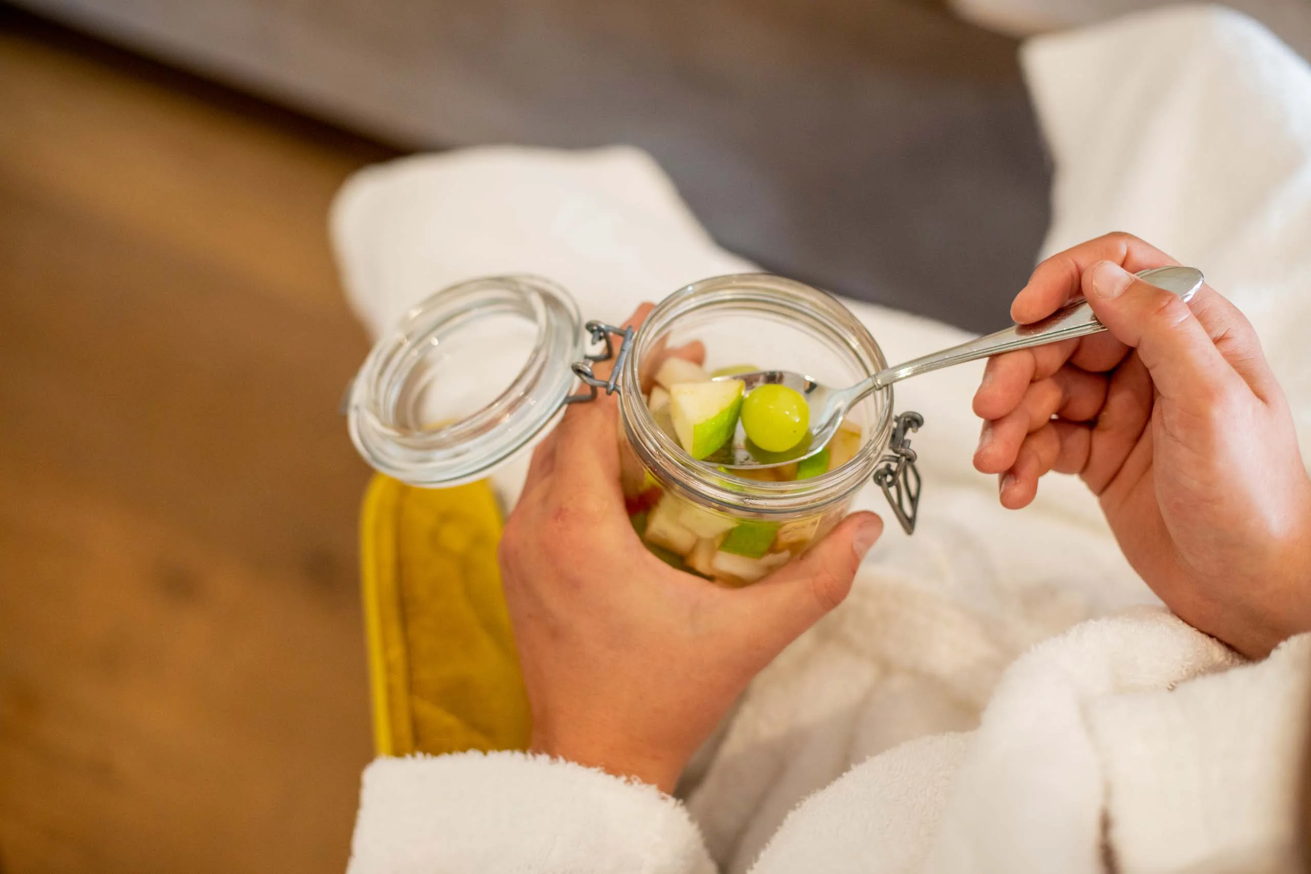 IMH: Intervallfasten mit nur zwei bis drei Mahlzeiten am Tag kann uns Zuhause schon mal auf die längeren Essenspausen einstimmen. Vor der Fastenwoche erhalten die TeilnehmerInnen von mir eine Anleitung für sog. Entlastungstage, die die Fastenzeit im Hotel ganz wesentlich erleichtern. Eine Darmreinigung ist bei Frischkost- oder Basenkost nicht erforderlich. Hier sorgen ausreichend Ballaststoffe für eine Reinigung des Darms. Da die Kost sehr leicht ist, hat der Darm praktisch auch eine Urlaubswoche.