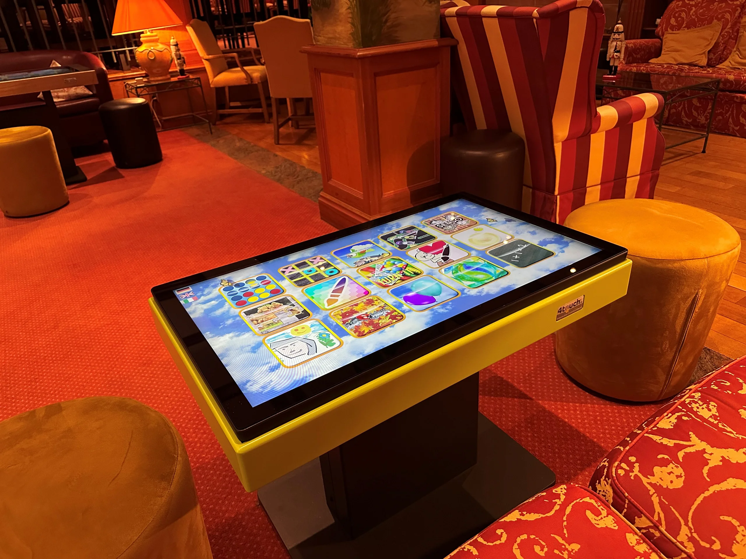 Die Spieltische bieten kindgerechte Spiele für verschiedene Altersgruppen, die Spaß machen und das spielerische Lernen fördern. Die interaktive Touch-Bedienung begeistert sofort. Ob Memory-Varianten, Reaktionsspiele oder kleine Geschicklichkeits-Challenges, die Tische bieten Gästen eine willkommene Möglichkeit, sich kreativ auszutoben.