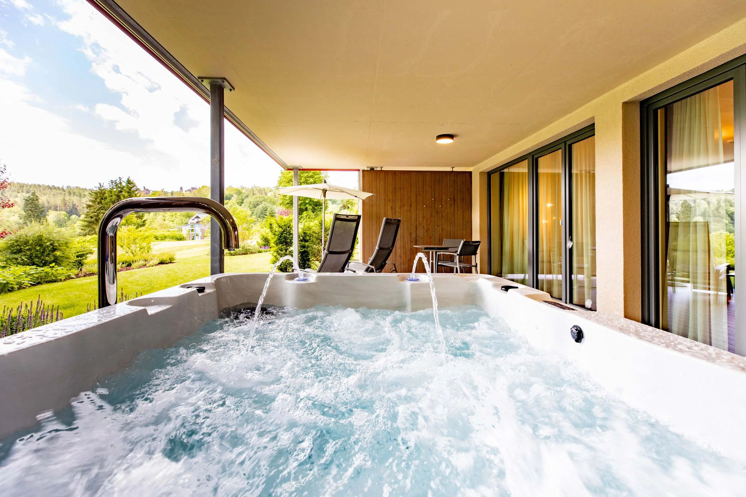 - Whirlpool mit Blick ins Grüne auf Balkon oder Terrasse