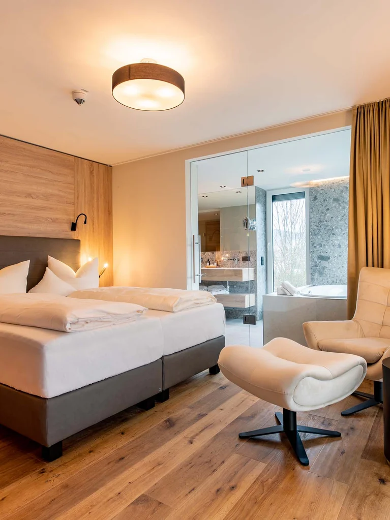 Manche Orte fühlen sich vom ersten Moment wie ein Zuhause an – nur besser. In unseren Private Spa Suiten mit Whirlpool und Sauna erleben Sie exklusive Ruhe, natürlichen Luxus und einen Hauch von ganz persönlicher Freiheit. Hier geht es nur um Sie, um Ihre Zeit, Ihre Erholung – fernab vom Alltag und ganz nah bei sich selbst.