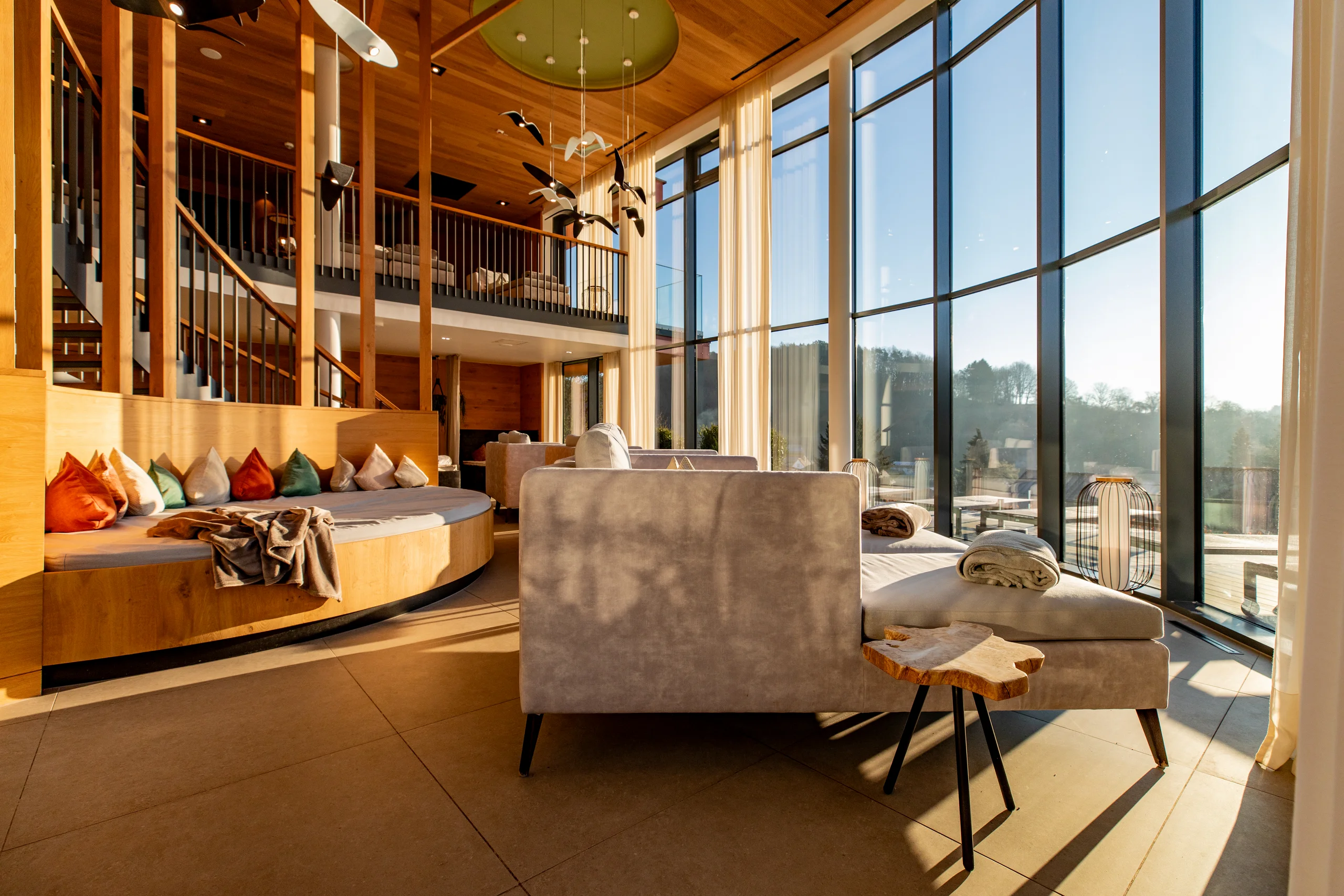 Stille spüren, in den Himmel schauen, loslassen – in der Relaxwelt unseres Wald Spa Resorts finden Sie jene Augenblicke, die ganz Ihnen gehören. Zwischen sanften Farben, natürlichen Materialien und der Weite des Dahner Felsenlands entfaltet sich eine Atmosphäre der Ruhe, in der Körper, Geist und Seele wieder in Einklang finden. Ob im lichtdurchfluteten Panoramahaus, rund um den Naturbadeteich oder auf einem Daybed im Gartenparadies: Jede unserer Relaxzonen ist ein Ort zum Erholen. Immer inklusive: der Blick ins Grüne des Pfälzerwalds und das Gefühl, angekommen zu sein.