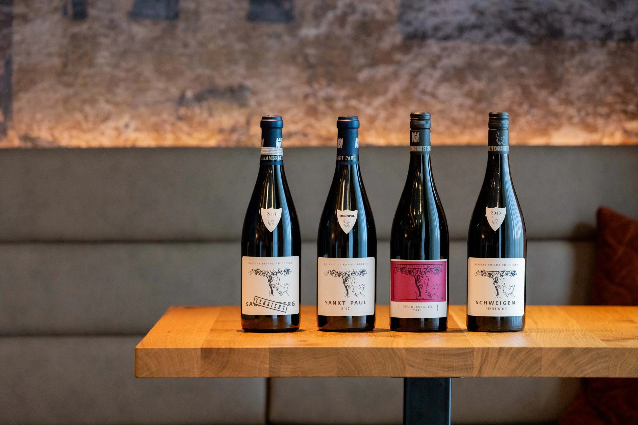 Nach einem entspannten Tag voller Weinverkostungen und Erkundungen erwartet Sie im Pfalzblick Wald Spa Resort der perfekte Abschluss: Genießen Sie ganz entspannt erlesene Weine aus der Pfalz und dem Elsass oder probieren Sie einen unserer internationalen Spitzenweine. Ob der Spitzenwein des Weinguts Dr. Wehrheim oder die preisgekrönten Rotweine von Friedrich Becker – lassen Sie sich von den Aromen und der Qualität der Weine verführen. Gerne können Sie die Weine aus Ihrem (Kurz-)Urlaub in der Pfalz an der Weinstraße in unserer Vinothek auch zum Ab-Hof-Preis einkaufen.